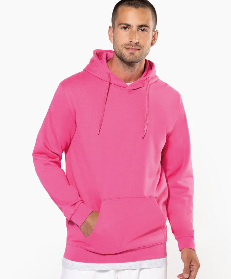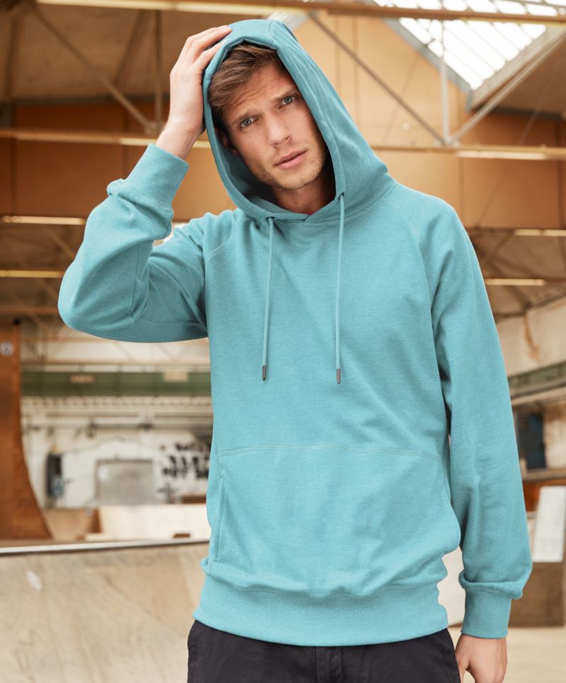 Laufende Materialumstellung auf recyceltes Polyester in Gange, gerader Schnitt, Kapuze mit Single Jersey Futter, flache Kordelzüge mit Metallenden, Nackenband, Single Jersey Halbmond am Rückenteil, PST-Garn Technologie, Oberfläche aus 100% Baumwolle, innen angeraut, neutrales Größenlabel, doppeltes Satinetikett, 30° waschbar, nicht trocknergeeignet