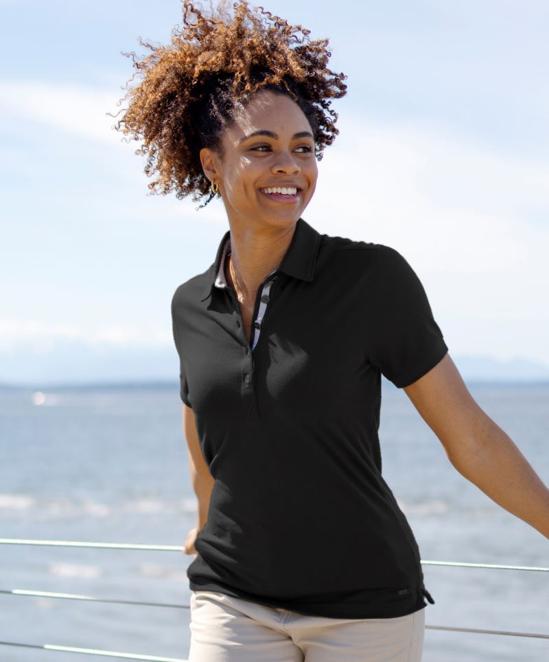 3er Knopfleiste mit Metallknöpfen, Knopfleiste innen in Kontrastfarbe, Nackenband in Kontrastfarbe, Seitenschlitze, weicher Griff, feuchtigkeitsregulierend, UV-Schutz 35+, 40° waschbar, nicht trocknergeeignet, nicht chemisch reinigen