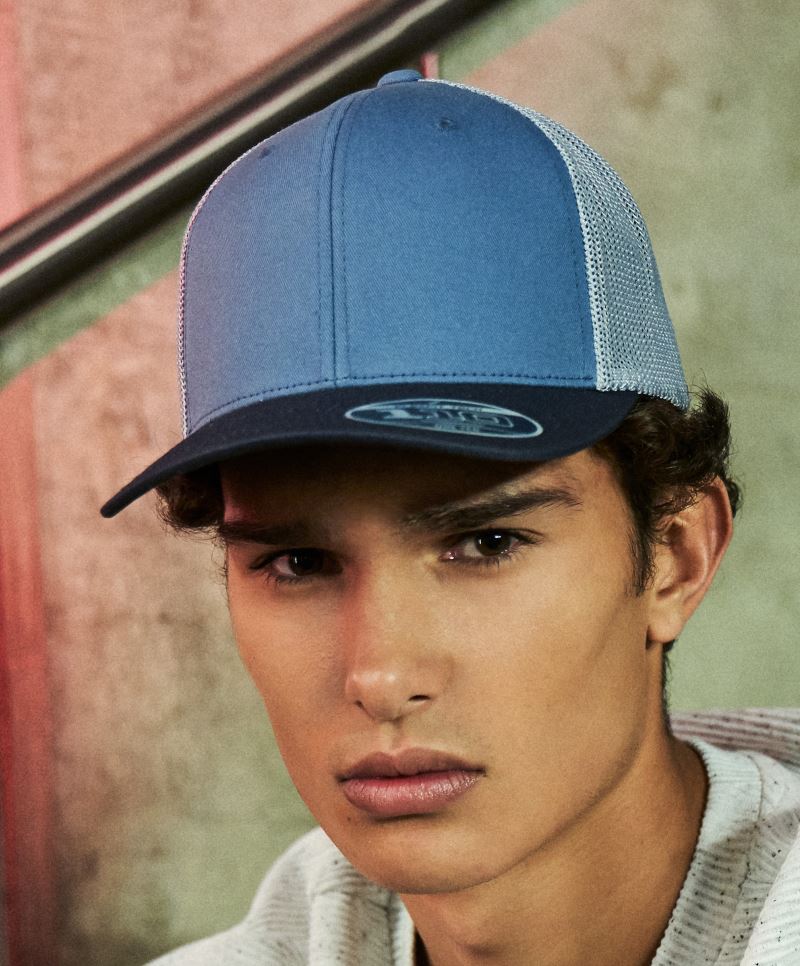 Aufkleber auf dem Schirm, leicht gebogener Schirm, schwarze Schirmunterseite, 8 Ziernähte am Schild, Netz seitlich und hinten, Frontpanele verstärkt, 2 gestickte Luftlöcher, Snap-Verschluss Ton-in-Ton, nicht waschen, nicht bügeln, nicht trocknergeeignet, nicht chemisch reinigen
