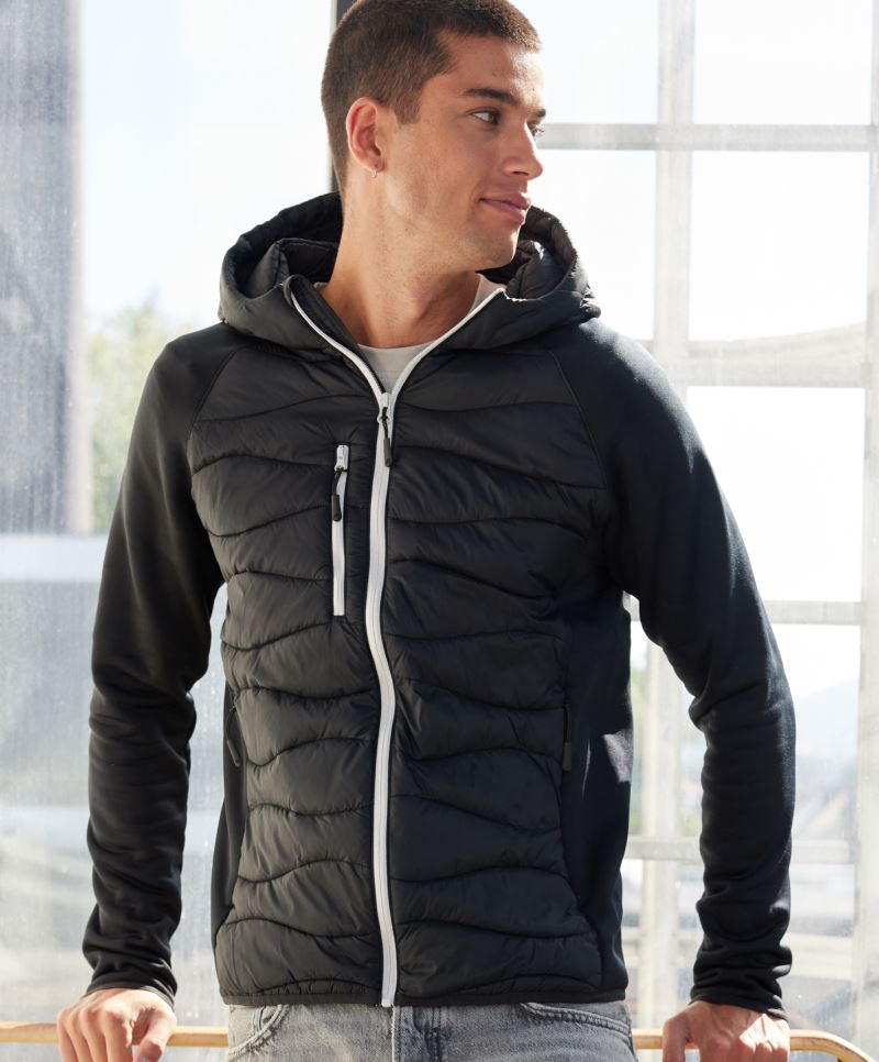Raglanärmel, gesteppte Einsätze im Vorder- und Rückenteil, unterlegter Reißverschluss mit Kinnschutz, YKK Reißverschlüsse, 2 Seitentaschen und 1 Brusttasche mit Reißverschluss, 2 Innentaschen, 30° waschbar, nicht bügeln, trocknergeeignet bei niedriger Temperatur