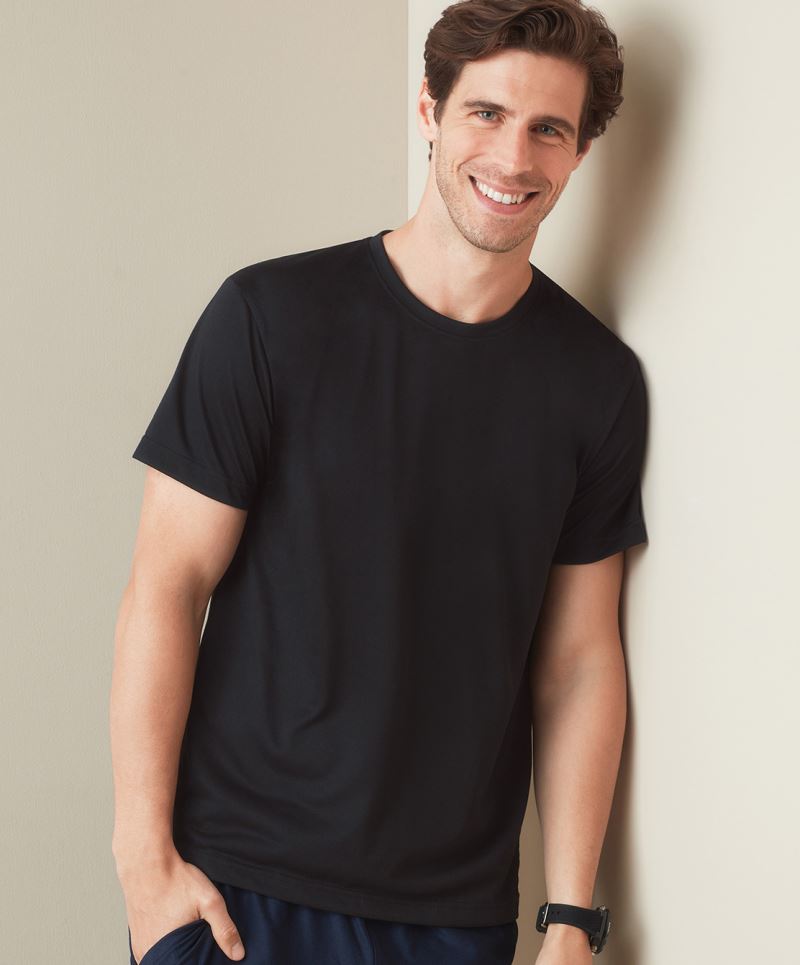 Gerader Schnitt, atmungsaktiv, Nackenband, Doppelnähte an Schultern, Hals- und Armausschnitt, feuchtigkeitsregulierend, schnelltrocknend, 30° waschbar, nicht trocknergeeignet