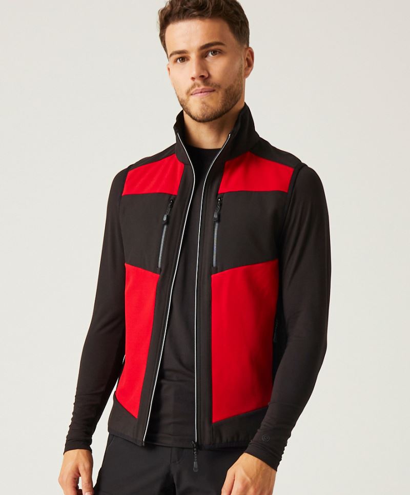 Wind- und wasserabweisend (2.000mm Wassersäule), atmungsaktiv und wasserdampfdurchlässig (2.000g/m² in 24h), Stehkragen innen mit weichem Fleece, ergonomisch geformte Ärmel, innenliegende wärmende Ärmelbündchen, durchgehend unterlegter Reißverschluss mit Windschutzblende und Kinnschutz, verdeckte Verarbeitung an Knöpfen und Reißverschlüssen, Seitentaschen, Brusttasche und Innentasche mit Reißverschluss, Brusttasche mit Klappe, Handytasche innen, länger geschnittener Rücken, Veredelungszugang am Rücken, robustes und strapazierfähiges Softshellmaterial, Reflexelemente (ohne Schutzfunktion) an den Ärmeln und im Rückenteil, 30° waschbar, nicht bügeln, nicht trocknergeeignet