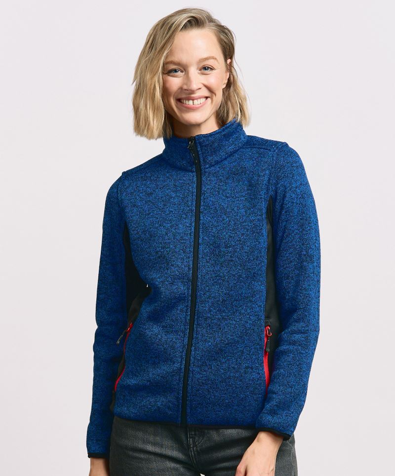Leicht taillierter Schnitt, Stehkragen, elastische Softshelleinsätze an Seiten, Schultern und Ärmel, durchgehend unterlegter Reißverschluss mit Kinnschutz, 2 Seitentaschen mit verdecktem Reißverschluss, weiches, wärmendes, pflegeleichtes Material in Melange-Optik, Außen: Strickoptik, innen angeraut, 30° waschbar, Schonwäsche, nicht trocknergeeignet