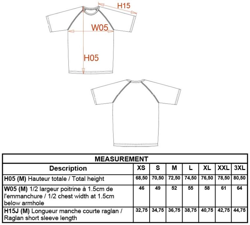 Verbesserter Rundhalsausschnitt mit Nackenband, Raglanärmel mit verdeckten Nähten, schnelltrocknend, 40° waschbar, nicht trocknergeeignet, nicht chemisch reinigen