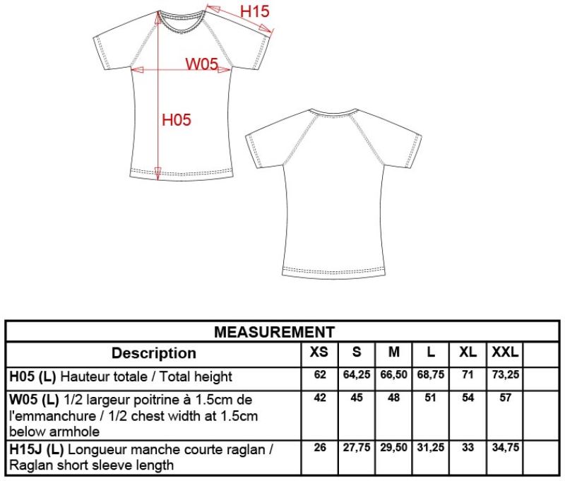 Verbesserter Rundhalsausschnitt mit Nackenband, Raglanärmel mit verdeckten Nähten, schnelltrocknend, 40° waschbar, nicht trocknergeeignet, nicht chemisch reinigen