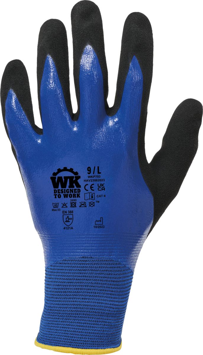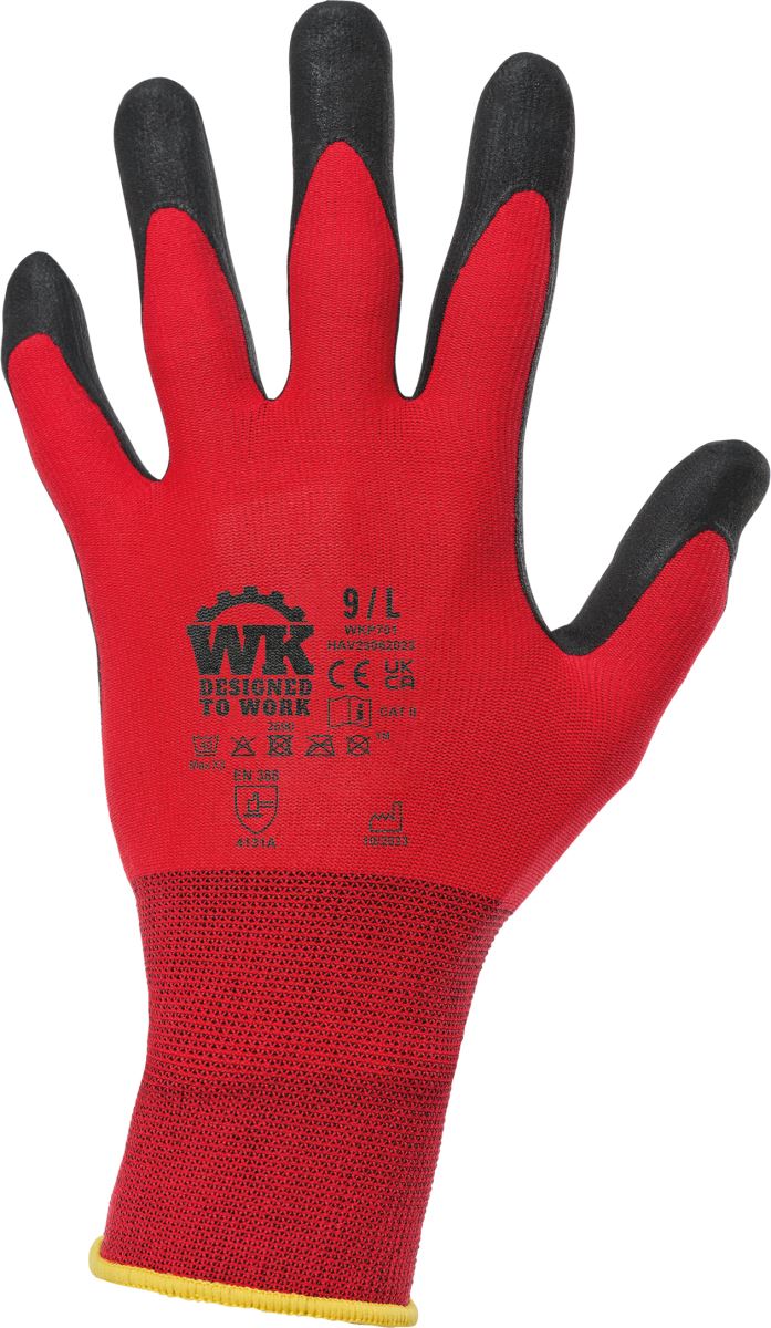 Strickbündchen am Ärmel, verstärkter Bereich zwischen Daumen und Zeigefinger, zertifiziert nach EN ISO 21.420 und 388, unterschiedliche Farbe je nach Größe der Handschuhe, 40° waschbar