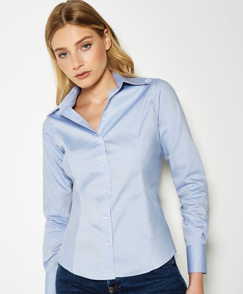 Taillierter Schnitt, Kragen verstärkt, mit 3 Knöpfen verstellbare Manschetten, abgerundeter Saum, Knöpfe Ton-in-Ton, Ersatzknöpfe, Doppelnähte an Ärmeln und Seite, Abnäher an Vorder- und Rückenteil, Rückenpasse, 40° waschbar, bügelleicht, nicht trocknergeeignet, Größen 26-28 Art.Nr. 43.702X