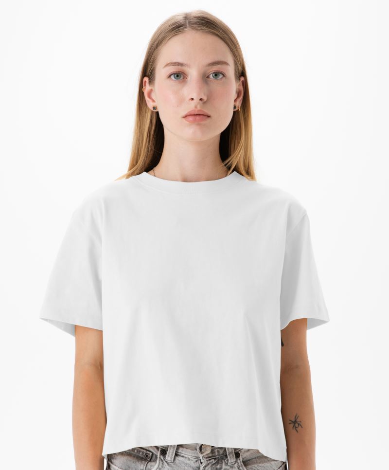 Kurzer legerer Schnitt, 1x1 Rundhalsausschnitt, überschnittene Ärmel mit Aufschlag, hergestellt in Afrika, Tear Away Label, 40° waschbar, nicht trocknergeeignet, nicht chemisch reinigen