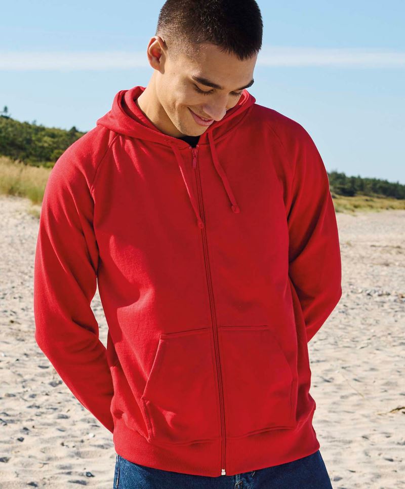 2-lagige Kapuze ohne Kordel, Rippstrickbündchen an Ärmel und Saum, YKK Reißverschluss, Kängurutasche, innen angeraut, EU Ecolabel, SA 8000, 60° waschbar, trocknergeeignet bei niedriger Temperatur, 40° Wäsche empfohlen