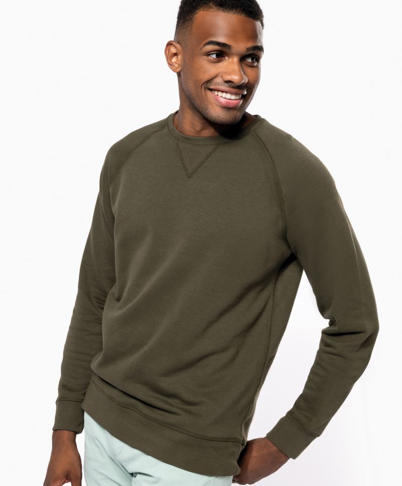 Legerer Schnitt, Nackenband, Raglanärmel, Rippstrickbündchen an Ärmel und Saum, innen angeraut, EU Ecolabel, SA 8000, neutrales Größenlabel, 60° waschbar, trocknergeeignet bei niedriger Temperatur, 40° Wäsche empfohlen