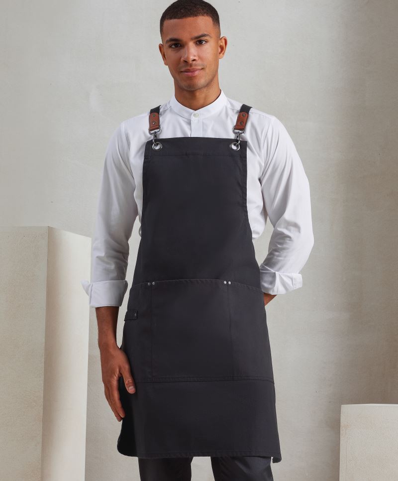 Brusttasche mit Reißverschluss, 2 Seitentaschen, Taschenmaß: 24x17cm, Nähte in Kontrastfarbe, Stoffbänder: 90cm lang, Stoffband mit Messingschnalle als Verschluss, Ösen und Nieten Details, Länge: 86cm, Breite: 72cm, Easy Care, Industriewäsche 85° waschbar, 60° waschbar, trocknergeeignet bei niedriger Temperatur, nicht chemisch reinigen