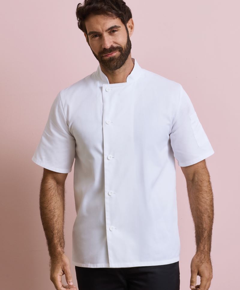 Unisex, überlappender 5 Knöpfe-Verschluss, langlebige Harzknöpfe, Ärmeltasche, 60° waschbar, Easy Care, chemische Reinigung, Industriewäsche 85° waschbar, trocknergeeignet bei niedriger Temperatur