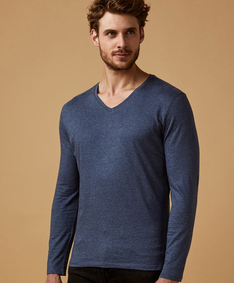 Schmaler Schnitt, schmal eingefasster V-Ausschnitt, neutrales Größenlabel, 40° waschbar, nicht trocknergeeignet