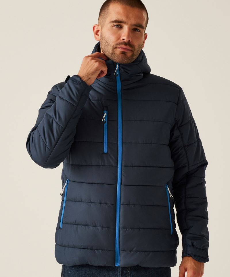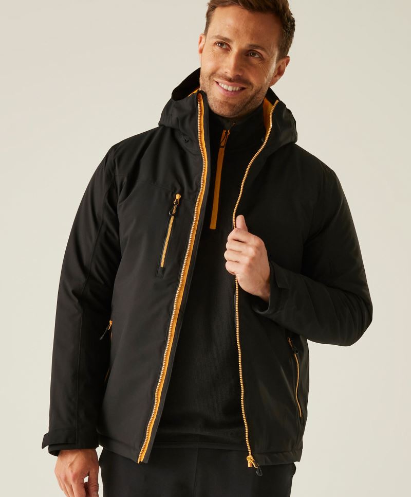 Elastische Einsätze an Kapuze, Ärmeln und Seitenteilen, wasserabweisende Ausrüstung, Reißverschluss mit Kinnschutz, Napoleontasche, 2 Seitentaschen mit Reißverschluss, hoher Tragekomfort durch elastische Einsätze, trocknergeeignet bei niedriger Temperatur, nicht chemisch reinigen