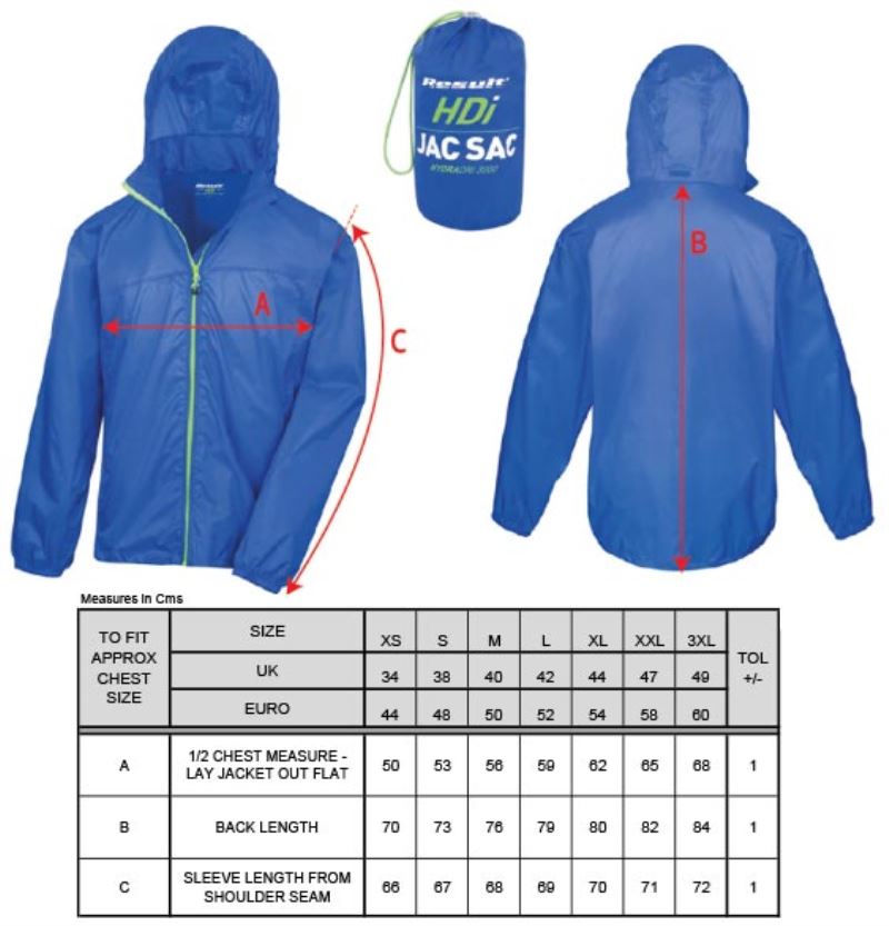 Wasserdicht (3.000mm Wassersäule), atmungsaktiv (1.000g/m² in 24h), Stehkragen mit integrierter Kapuze, elastische Armabschlüsse, Reißverschluss in Kontrastfarbe, verklebte Nähte, winddicht, kann klein verpackt werden, inklusive Beutel, gedrucktes Label innen, 30° waschbar, Schonwäsche, nicht bügeln, nicht trocknergeeignet