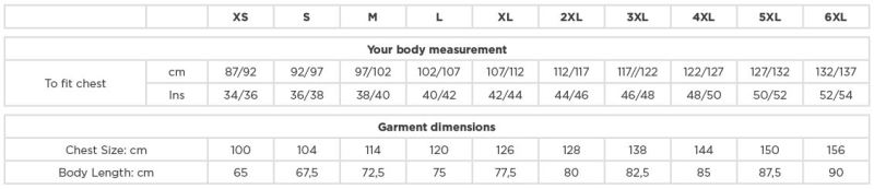 Größen: XS S M L XL XXL 3XL* 4XL* 5XL* 6XL* * in ausgewählten Farben erhältlich