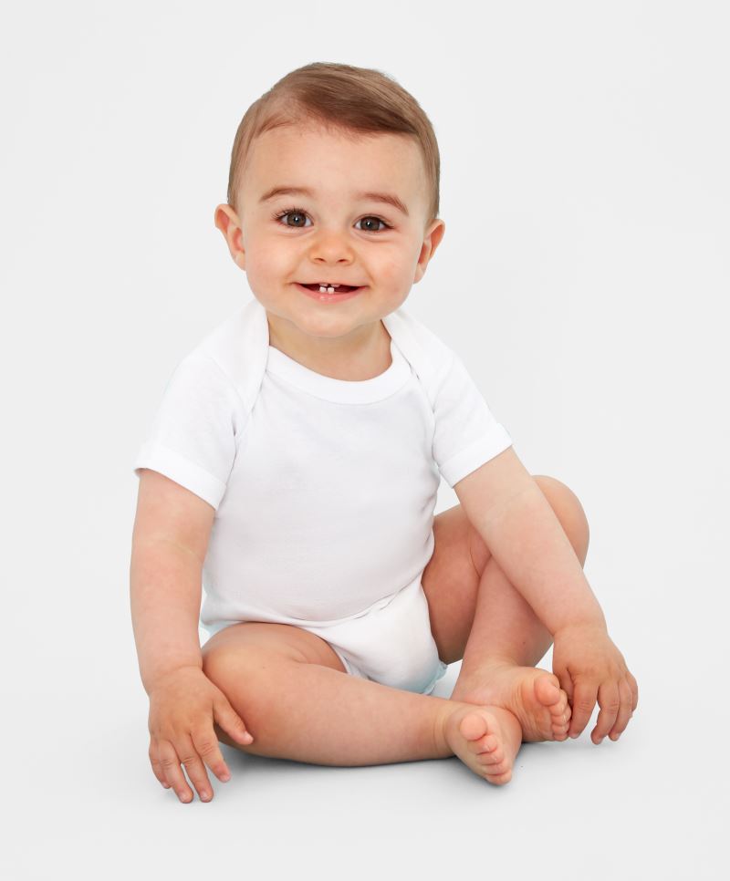 Überlappender angenehmer Halsausschnitt, Rippstrickbündchen an Hals, Ärmeln und Bein, Druckknöpfe im Schritt, dehnbares Material, 1x1 Rippstrick, 40° waschbar, nicht trocknergeeignet