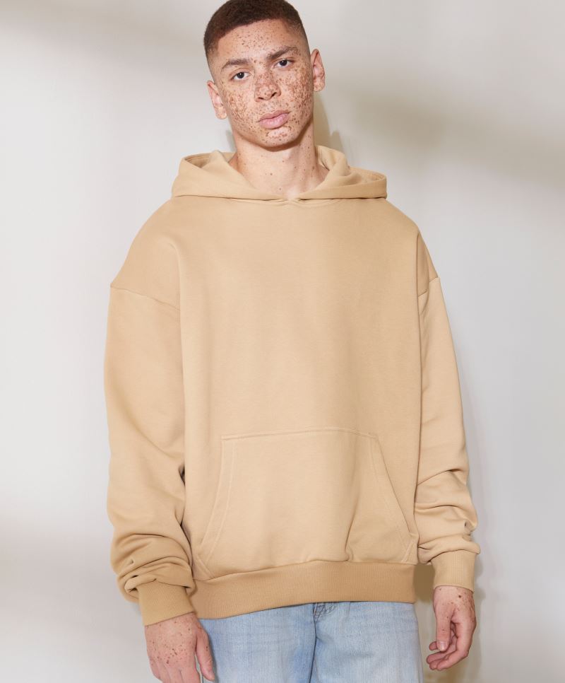 Großzügiger Schnitt, Oversize Look, gefütterte Kapuze, Set-In Ärmel, Kängurutasche, Seitennähte, Tear Away Label, neutrales Größenlabel, 60° waschbar, nicht trocknergeeignet