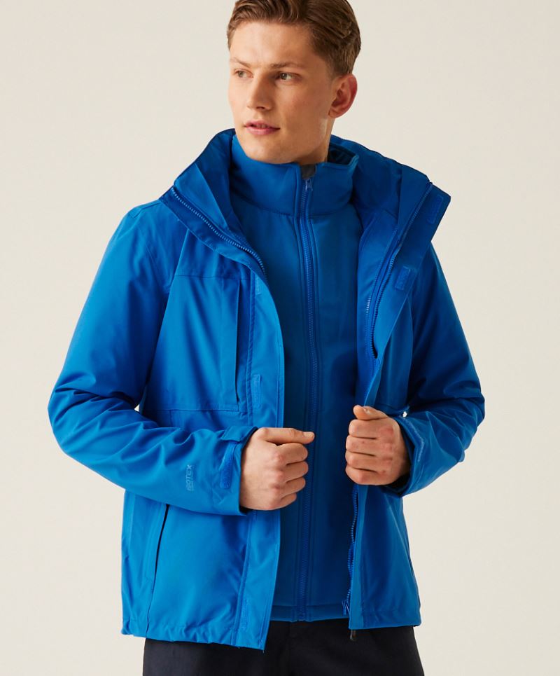 Winddicht und wasserabweisend (5.000mm Wassersäule), wasserdichte Reißverschlüsse, atmungsaktiv, Kapuze mit elastischer Einfassung, elastischer Bund und Ärmelabschluss, Napoleontasche, 2 Seitentaschen und 1 Brusttasche mit Reißverschluss, 3 Innentaschen, Veredelungszugang, TearAway Label, 40° waschbar, nicht trocknergeeignet, nicht chemisch reinigen