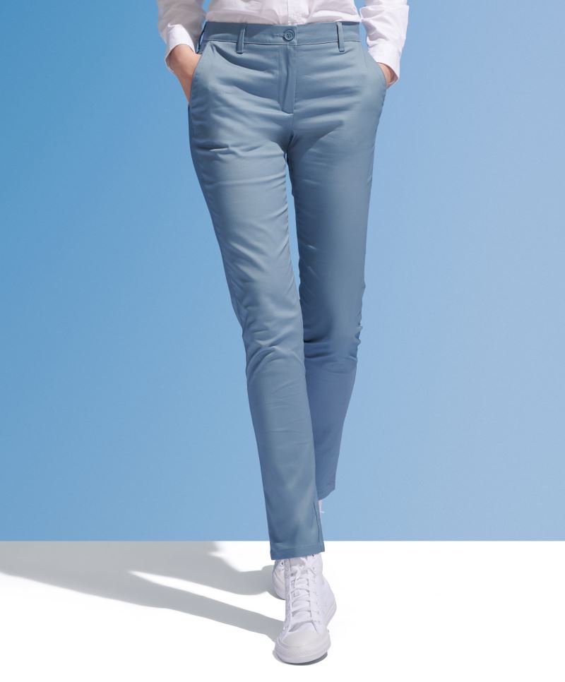 Enganliegende Passform, Gürtelschlaufen, 2 Taschen mit Paspel hinten, schräge Eingrifftaschen vorne, Tear Away Label, französische Größen: bitte Umrechnung entsprechend Maßtabelle, 30° waschbar, nicht trocknergeeignet