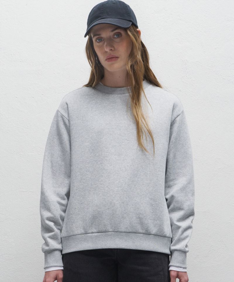 Oversize Schnitt, breiter Rundhalsausschnitt, Halbmond im Nacken, Nackenband, überschnittene Schultern, Flatlock-Nähte seitlich, nach vorne versetzte Schulternähte, Doppelnähte an Ärmeln und Ausschnitt, innen angeraut, neutrales Größenlabel, nicht trocknergeeignet, nicht chemisch reinigen