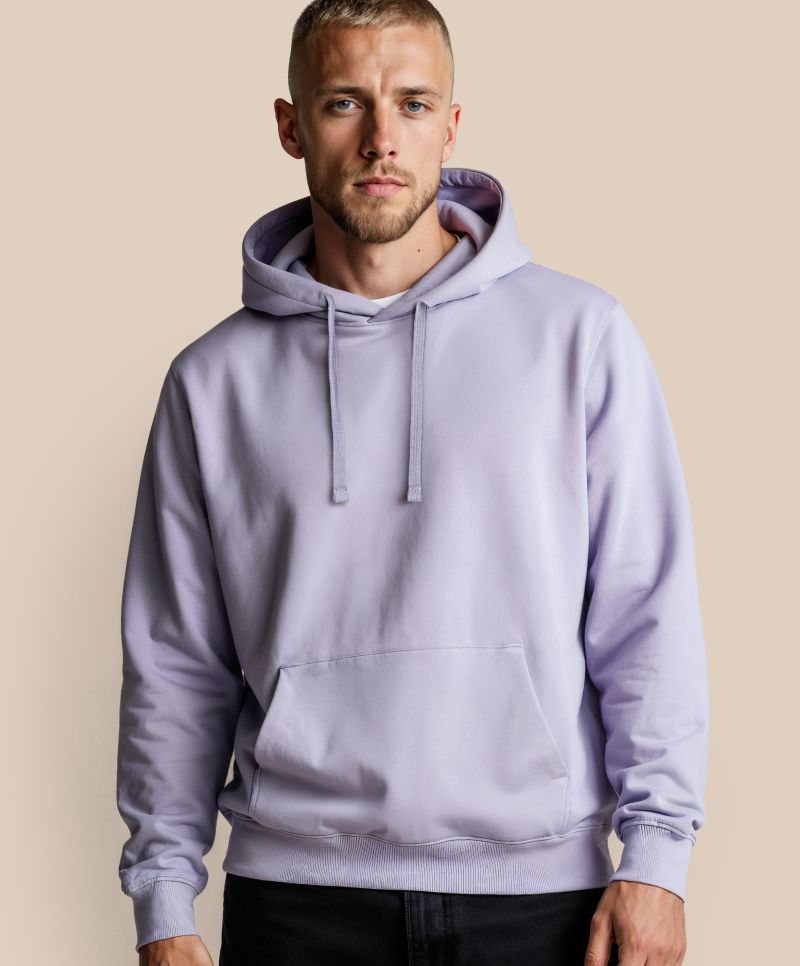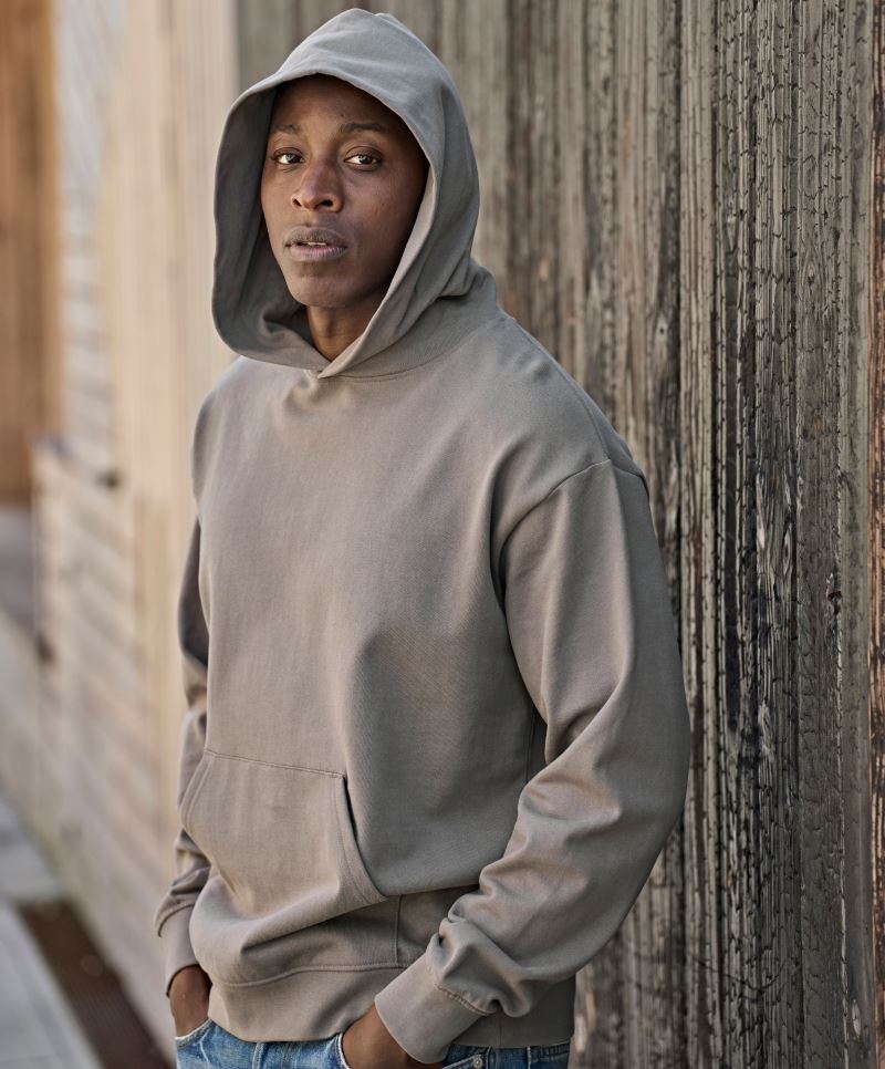 Lockerer Schnitt, gefütterte Kapuze mit flacher Kordel Ton-in-Ton, Fischgrät-Nackenband Ton-in-Ton, Halbmond im Nacken, 2x1 Rippstrick an Ärmeln und Bund, Kängurutasche, weicher Griff, zertifizierte vegane Produktion ohne tierische Hilfsstoffe, LCA-Berechnung (Life Cycle Assessment) zur Bewertung der Umweltauswirkungen über den gesamten Lebenszyklus, neutrales Größenlabel, 60° waschbar, trocknergeeignet bei niedriger Temperatur